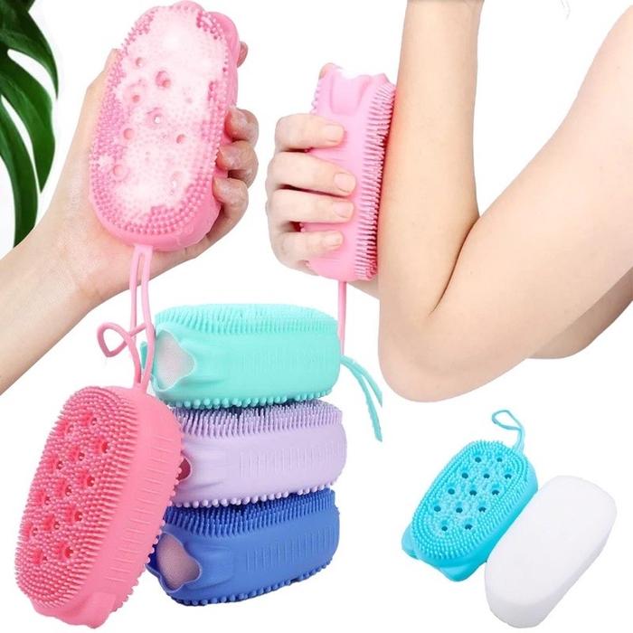 Sikat Mandi Silikon berbentuk padat, lembut, ramah kulit dan elastis. Sikat mandi dua sisi tanpa rasa sakit, mampu membersihkan lebih bersih dengan sikat halus, dapat digantung setelah mandi, mudah kering, bersih dan higienis.